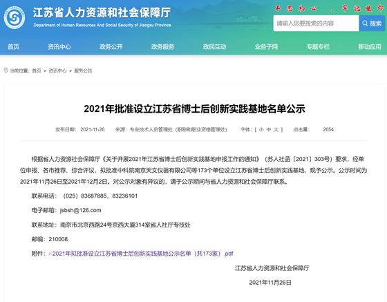 根据省人力资源社会保障厅《关于开展2021年江苏省博士后创新实践基地申报工作的通知》(苏人社函〔2021〕303号)要求,经单位申报、各市推荐、综合评议,我院喜获“江苏省博士后创新实践基地”称号。