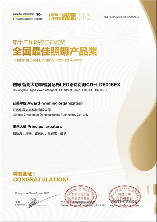 6月9日至11日,第30届广州国际照明展览会(GILE 2025)在广州进出口商品交易会展馆盛大举办,同期举行的第十三届阿拉丁神灯奖颁奖盛典成为照明行业瞩目的焦点。我院荣耀出席此次盛会,凭借卓越的创新能力和产品实力,斩获“全国最佳照明产品奖”,在行业中树立了新的标杆。