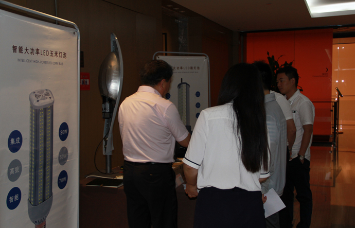 图三:向与会代表介绍我公司智能大功率LED路灯灯泡产品