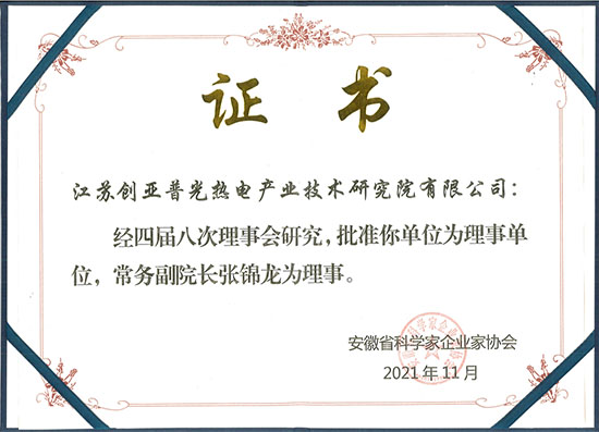 2021年底,经安徽省科学家企业家协会四届八次理事会研究评定,我院成为安徽省科学家协会理事单位,张锦龙副院长成为安徽省科学家企业家协会理事。并于本月授发牌匾和证书。